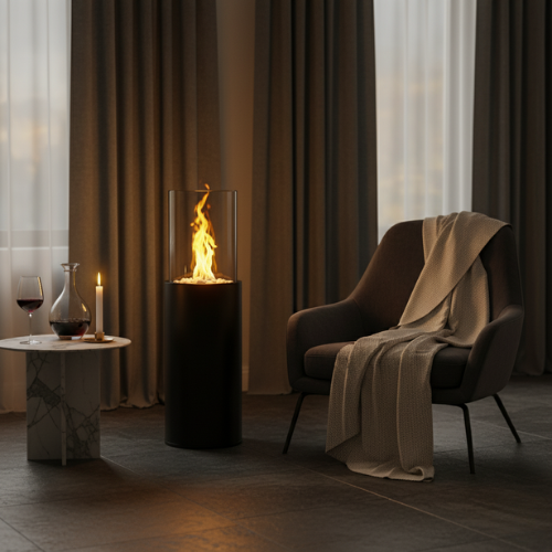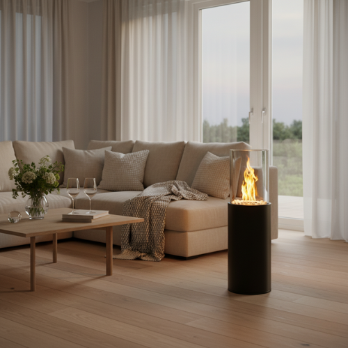 Den er røgfri, kræver ingen installation og skaber øjeblikkelig stemning med levende flammer – både i stuen, på altanen eller i udestuen. Fyld bioethanol på, tænd, og nyd varmen.