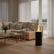 Den fritstående biopejs giver levende flammer, der skaber ro og en varm atmosfære – perfekt til stuen.