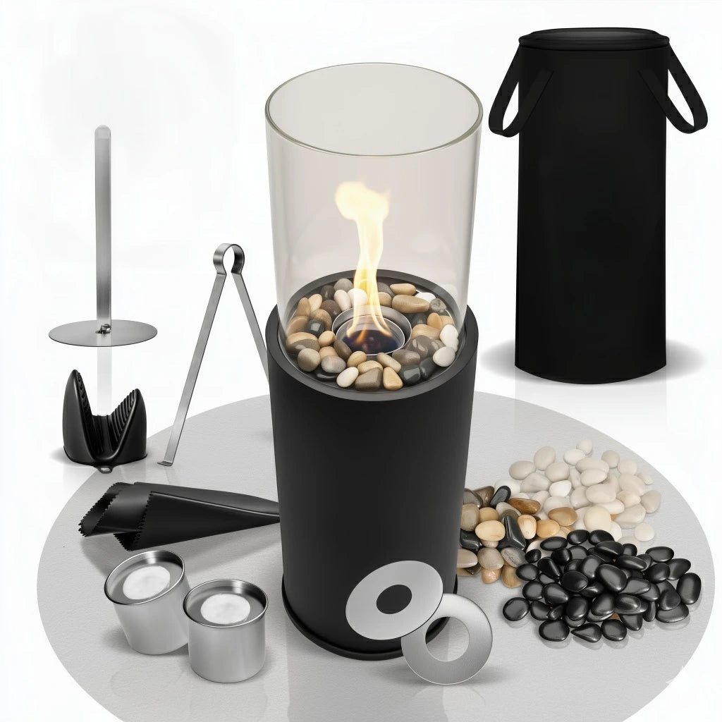Når du køber denne fritstående biopejs, får du ikke bare et designobjekt – du får en komplet oplevelse med alt det nødvendige tilbehør: