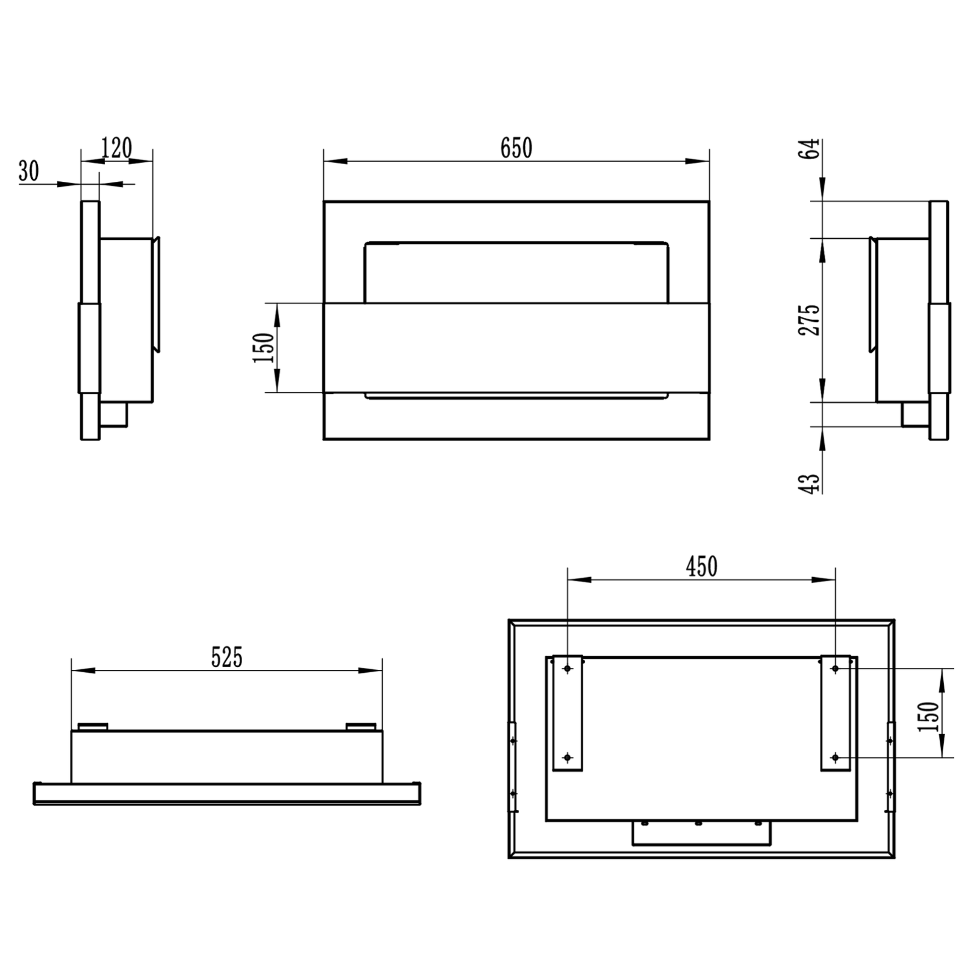 Væghængt biopejs 650x400 med glas i matsort